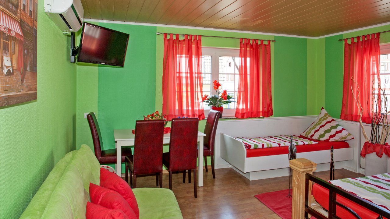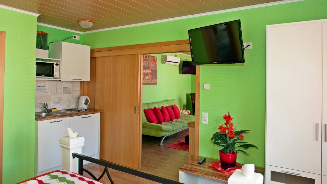 Dieses Appartment ist bis 5 Personen geeignet. Auch hier darf natürlich ein Flachbild TV in keinem Zimmer fehlen. Im dazughörigen kleinen Wintergarten können Sie in Ruhe ein Buch lesen oder einfach nur ausspannen. Wie in unserem Apartment 3 verfügt auch dieses über eine Küche